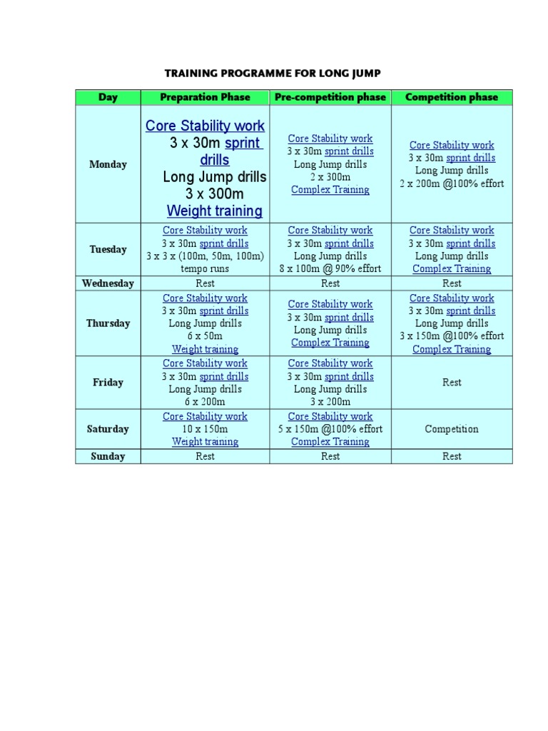 Training Programme For Long Jump Pdf
